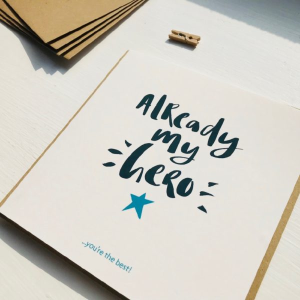 Already my Hero – Perfect for all the new Dads or even the Dads to be, send it as a Father’s Day card, for a Birthday or just because he’s a hero!