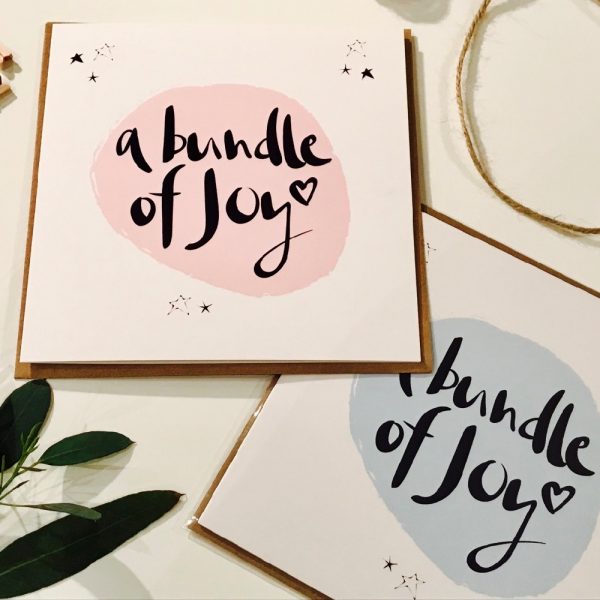 Our ‘Bundle of Joy’ card comes with a Kraft envelope and comes wrapped in a cellophane pack so that it arrives to you in perfect condition.