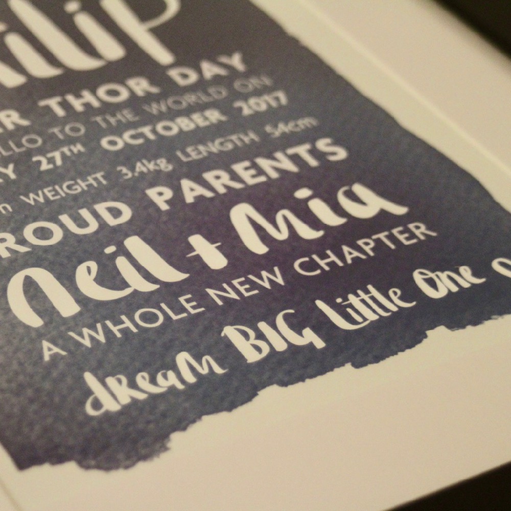 A beautiful hand lettered & personalised new baby birth print, a wonderful way to celebrate a little on saying hello to the world.